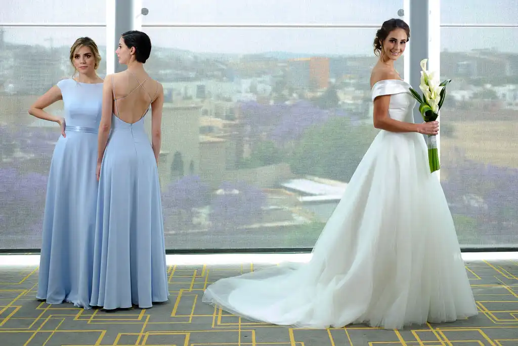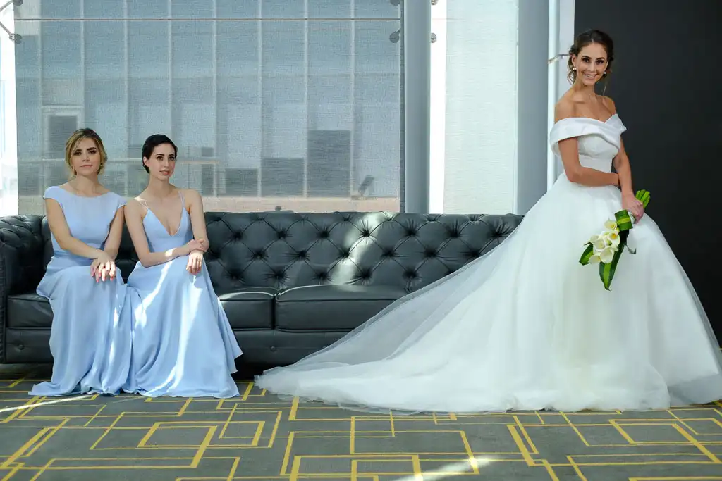 Mariana Penilla, who I’ve worked with before, called me because she needed images for a magazine spread. She had a clear idea of getting one long image to use in a two page spread, with a bride on one page and two bridesmaids on the other. She also stated that she was looking for a bright image, with an airy feeling. She was not looking for a studio shoot with seamless background nor an urban location.