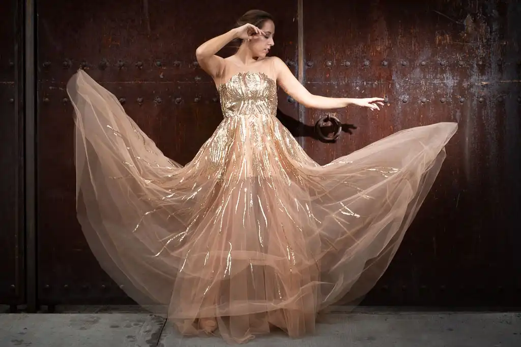 Some time ago I watched a video by Gavin Hoey in the Adorama Youtube channel where he shot a model with a long dress, flowing in the wind. Mariana and I aimed to shoot something similar with one of her recent dresses. This proved more difficult but got fairly close to our objective.